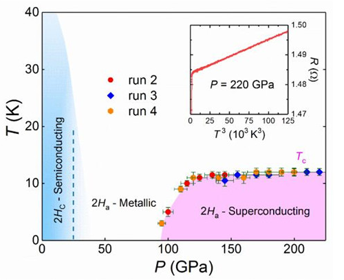 近日,中科院合肥物質科學研究院固體物理研究所與強磁場科學中心聯合科研團隊在超高壓條件下首 次在一種新的材料——二硫化鉬(2H結構過渡金屬二硫屬化物:2H-MoS2)中觀測到了超導現象。
